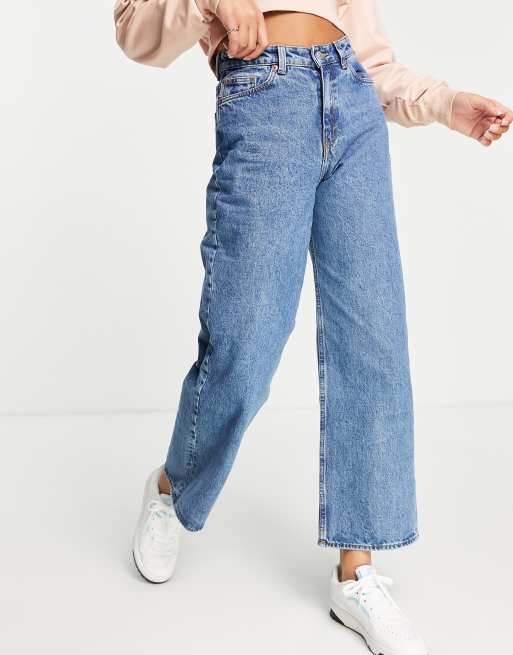 Monki Thea cotton baggy straight leg jeans in medium blue wash - MBLUE | ASOS